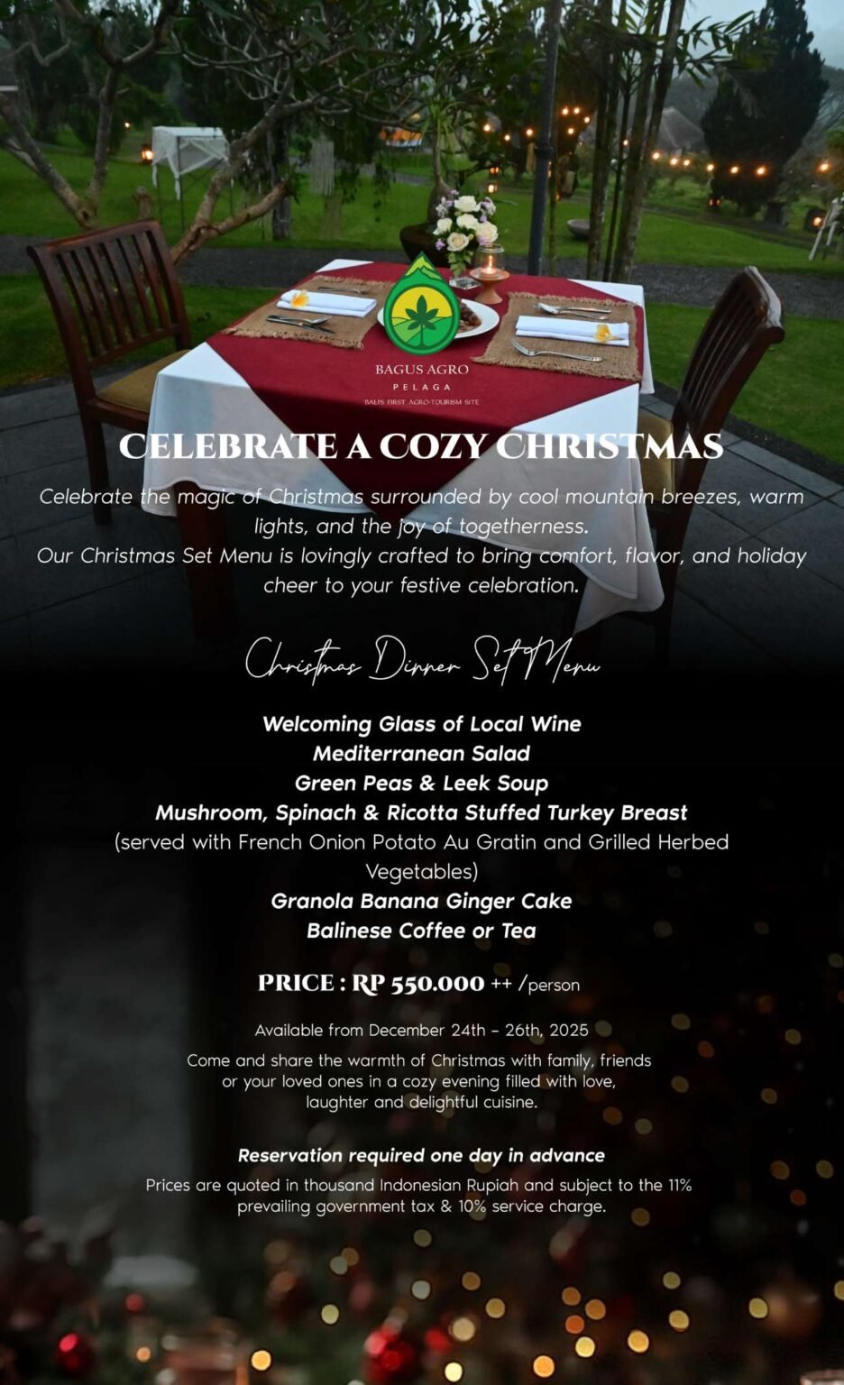 Reserve your festive experience at Bagus Agro Pelaga today