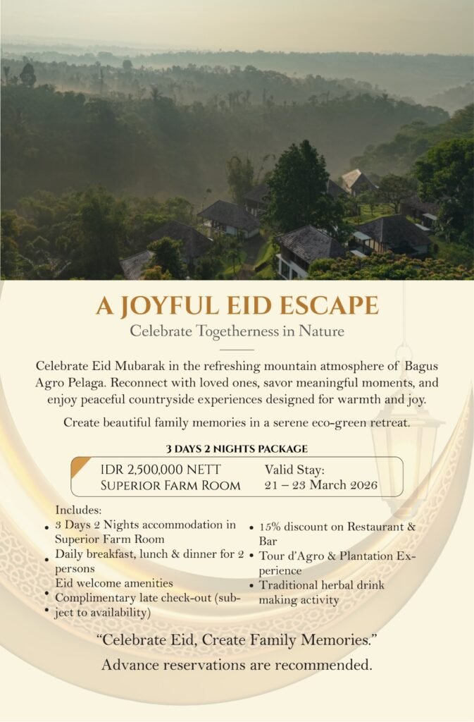 Celebrate Eid Mubarak in Bali with a refreshing escape to the highlands of Bagus Agro Pelaga, a tranquil eco-retreat surrounded by lush plantations, cool mountain air, and natural beauty. This exclusive Eid Mubarak getaway package is thoughtfully designed for families and couples seeking a meaningful holiday filled with togetherness, tradition, and relaxation away from the city.