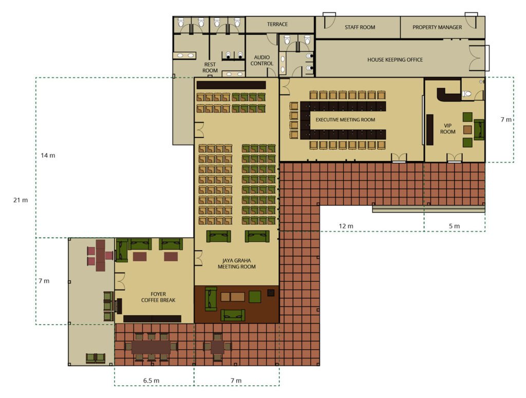 Bagus Agro Pelaga offers flexible meeting venues to suit a variety of events, from formal conferences to intimate gatherings. Jaya Graha Meeting Room accommodates up to 80 people in a theater-style arrangement, making it ideal for larger presentations or seminars. For smaller, more personal meetings, Executive Meeting Room provides a cozy U-shape setting for up to 20 participants. Both venues are equipped with essential facilities and supported by professional services, ensuring a smooth and successful event in a tranquil and inspiring atmosphere.